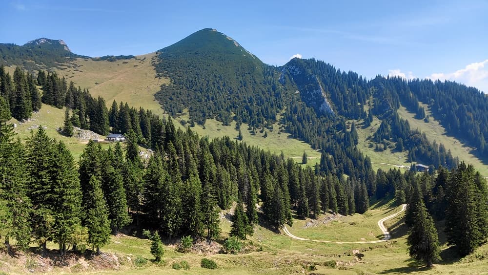 Geigelstein. Der Weg ist steil und man sieht nur im oberen Teil etwas von der herrlichen Natur. Er ist mit etwas Kondition
